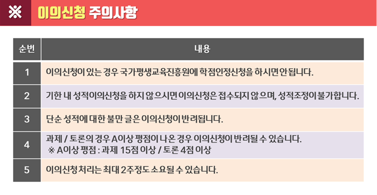 최종성적 확인 및 이의신청 방법 안내